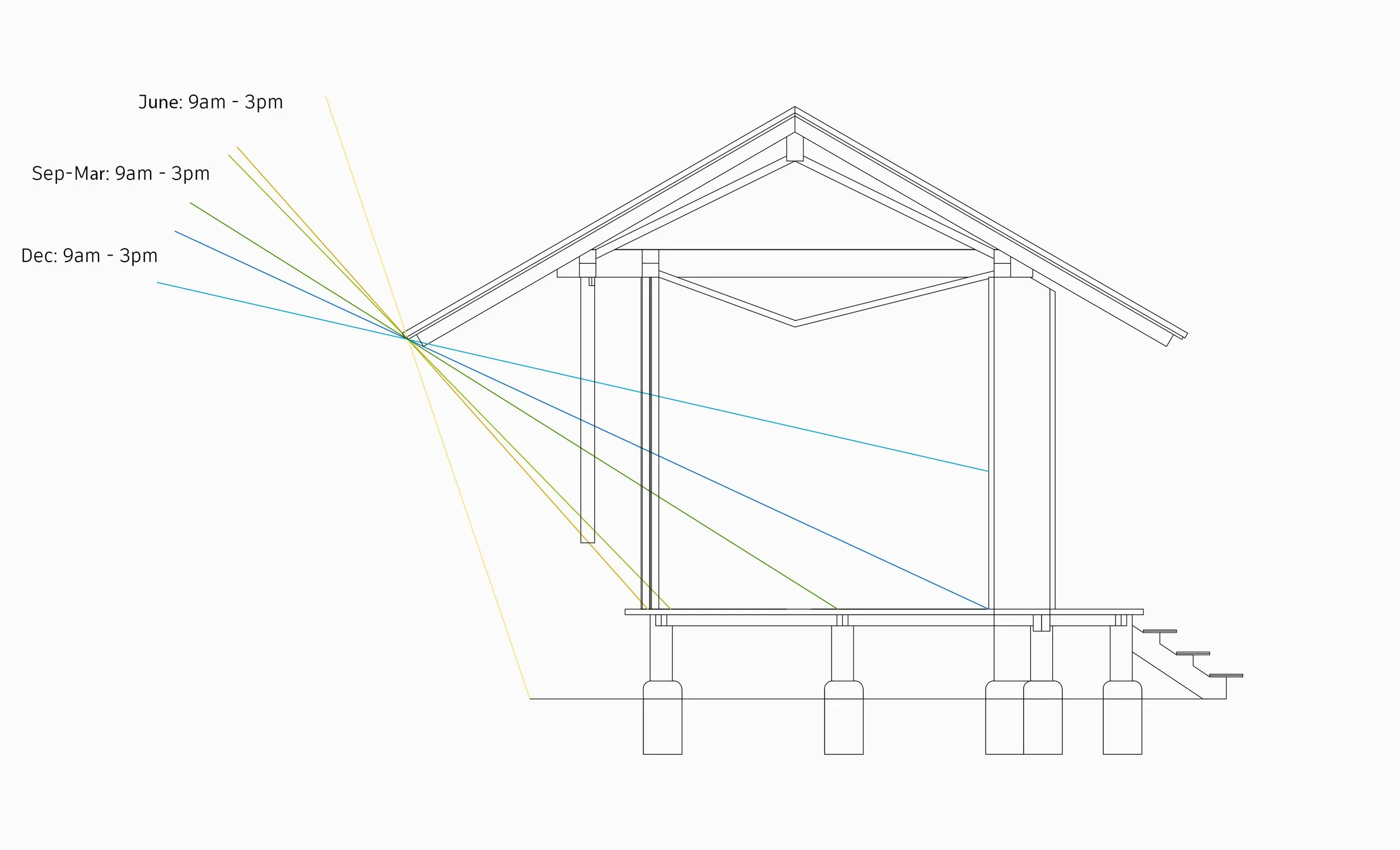 The students can access the interior space for meditation through the two wooden doors on the North side. During the summer, the glass doors on the South side can turn 90 degrees and become a glass wall, which maintains the meditative and sturdiness when someone enters from either side.