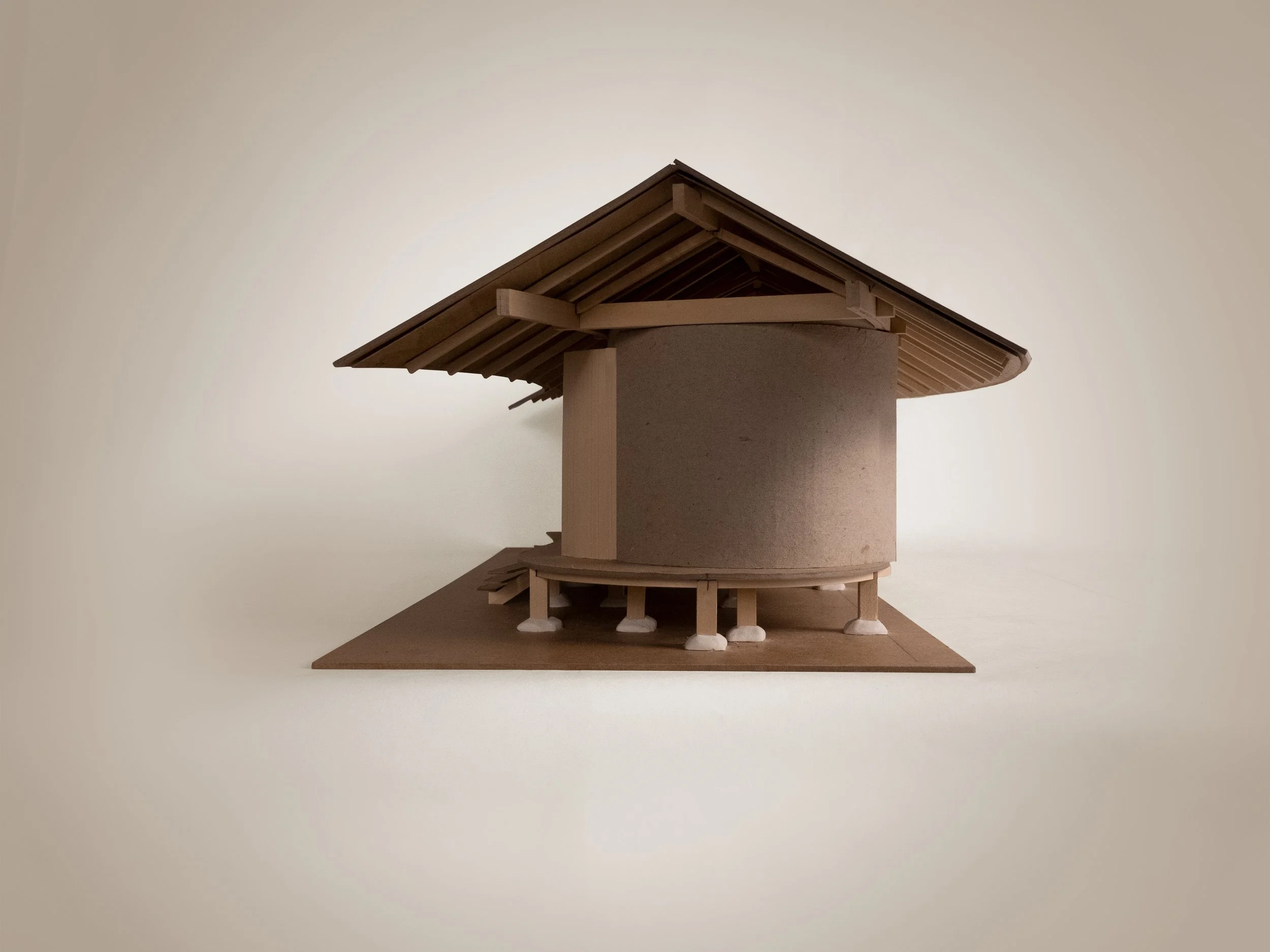 The Meditation House is a program of a small art school design based in the Hudson Valley forest. It is designed to be built from pine-oak wood found on site and hempcrete, a natural biocomposite material, a mixture of hemp hurds, lime, and water.